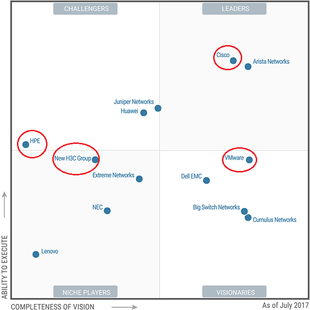 我們的口號是:與世界并肩。 ①?2017年數據中心網絡魔力象限