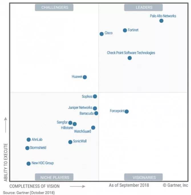 ??1、《思科被評為2018 Gartner企業網絡防火墻魔力象限的領導者》