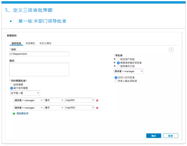 ??但企業(yè)中往往不止一個(gè)部門,信息中心對(duì)各部門的資源審批要求至少三級(jí)批準(zhǔn)。即:第一級(jí)由部門領(lǐng)導(dǎo)審批;第二級(jí)由信息中心普通管理員審批,最終級(jí)由信息中心領(lǐng)導(dǎo)審批。