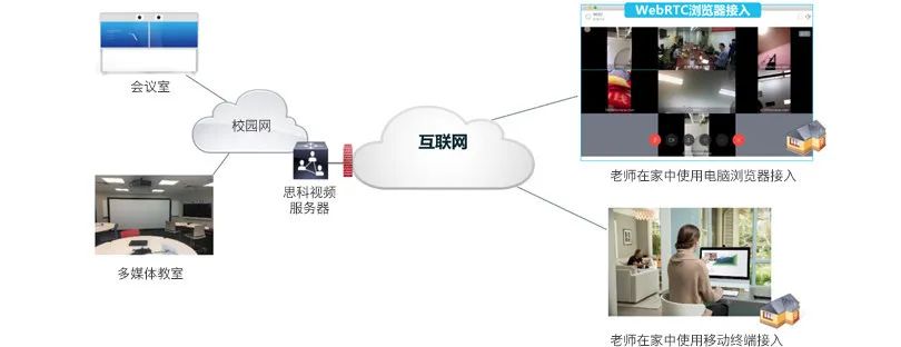 ? 教職工在家使用瀏覽器即可接入視頻會(huì)議,無需硬件視頻會(huì)議終端,簡(jiǎn)單無成本
