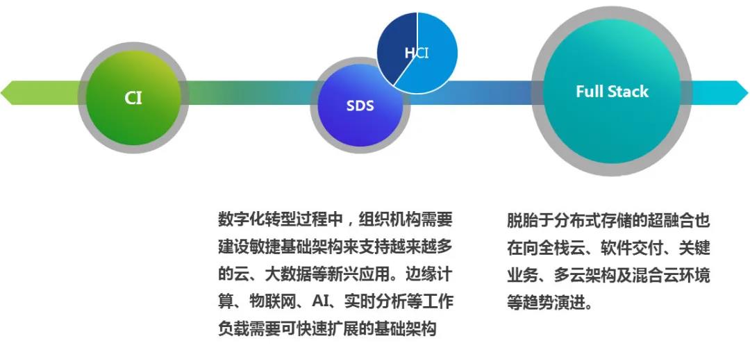 ? ? ? ?IT發(fā)展路徑:軟件定義存儲(chǔ)SDS?? 超融合HCI?全棧云Full Stack